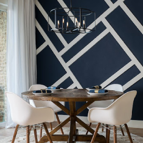 Specialized geometrical painting adds style and precision to walls and surfaces.